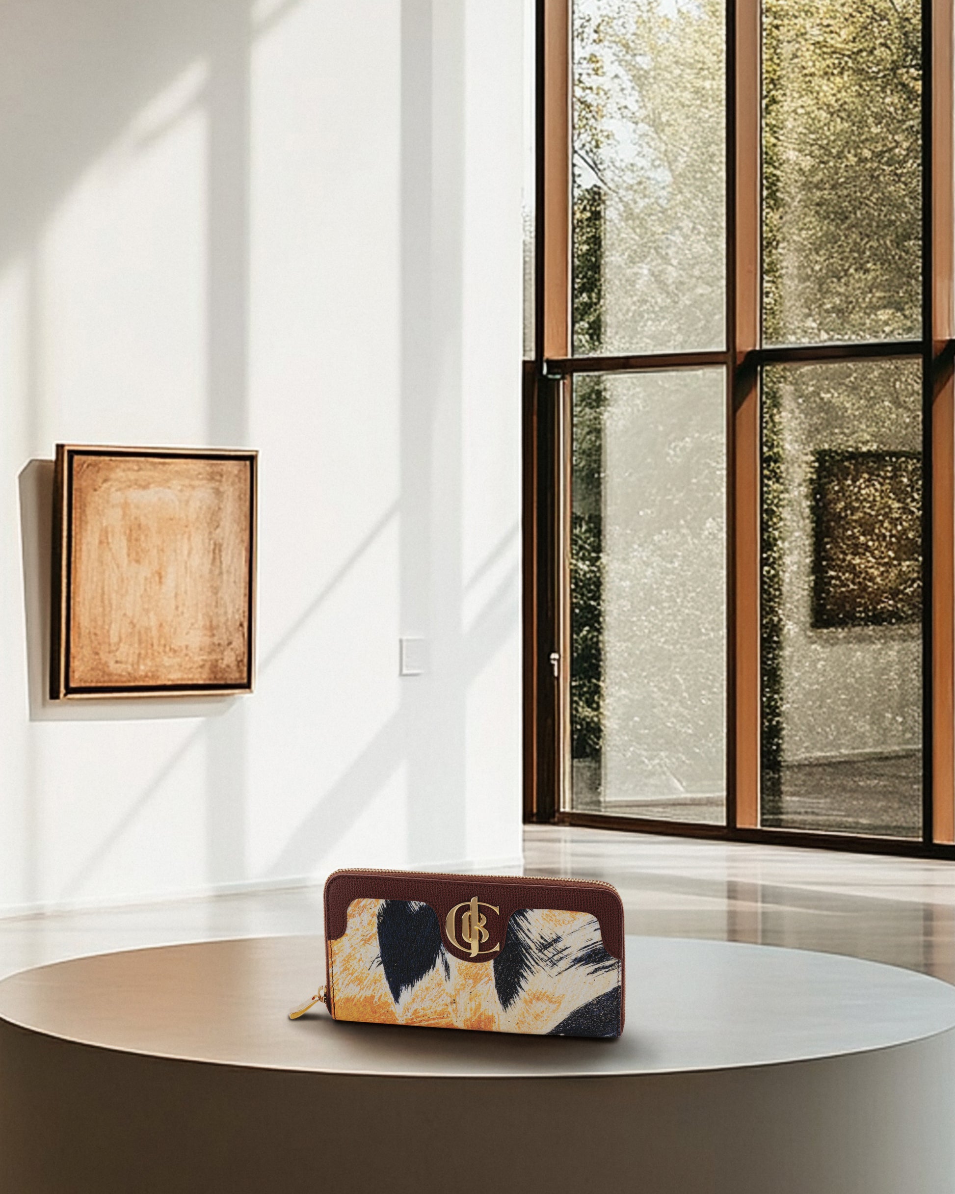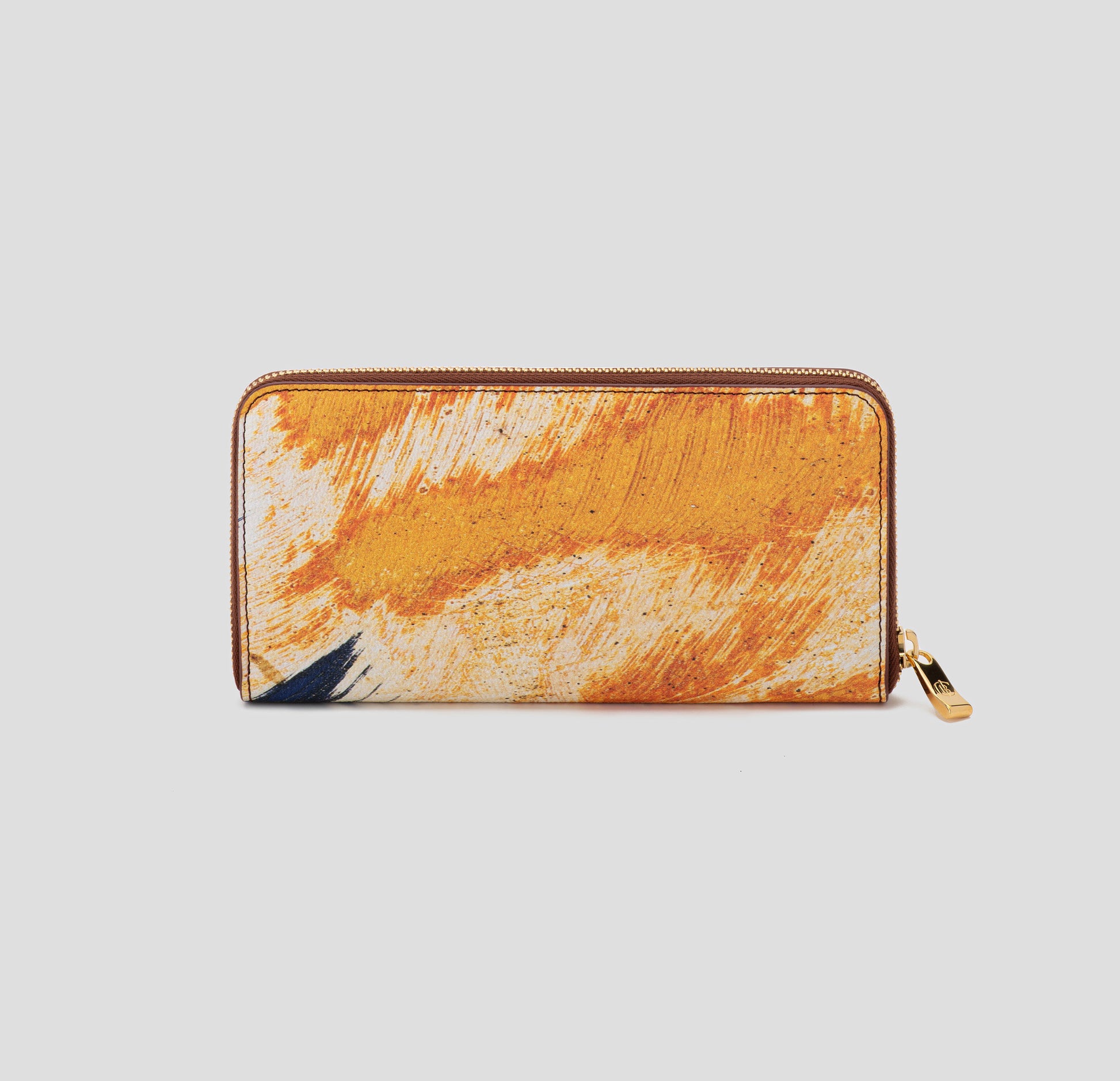 “FEATHER” – Macrophotography taken in Liguria, Italy of scratches and corrosion on the side of a boat. The sea water and the friction of the waves drawn suggestive scenes reminiscent of feathers carried by the wind of time. Materials consist of PVC coated canvas, sustainable leather trim, and natural brass made in Italy.